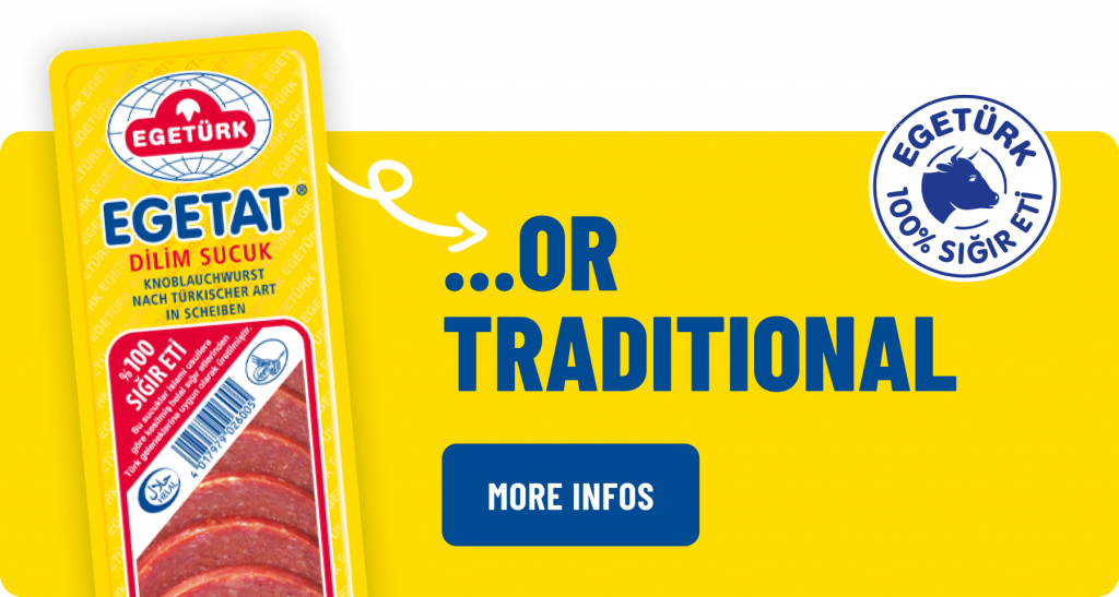 Our classic meat products have been around for over 60 years. Now, with our vegan sucuk, we offer a 100% vegan alternative for the delicious Egetürk experience.
